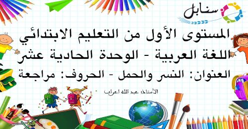 المستوى الأول - مادة اللغة العربية - الوحدة الحادية عشر - العنوان: النسر والحمل (تابع) - الحروف: مراجعة