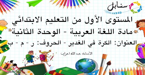 المستوى الأول - مادة اللغة العربية - الوحدة الثانية - العنوان: الكرة في الغدير - الحروف: ر - م - ب