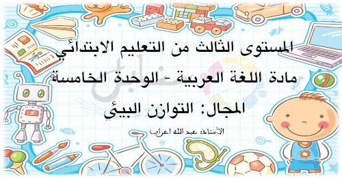 المستوى الثالث - مادة اللغة العربية - الوحدة الخامسة - المجال: التوازن البيئي - قواعد اللغة: الجملة الفعلية والجملة الاسمية وعناصر الجملة الفعلية - الإملاء: أسماء الإشارة
