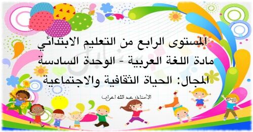 المستوى الرابع - مادة اللغة العربية - الوحدة السادسة - المجال: الحياة الثقافية والاجتماعية - قواعد اللغة: تصريف الفعل الصحيح مجردا ومزيدا في الماضي والمضارع - الإملاء: الواو في نهاية الفعل